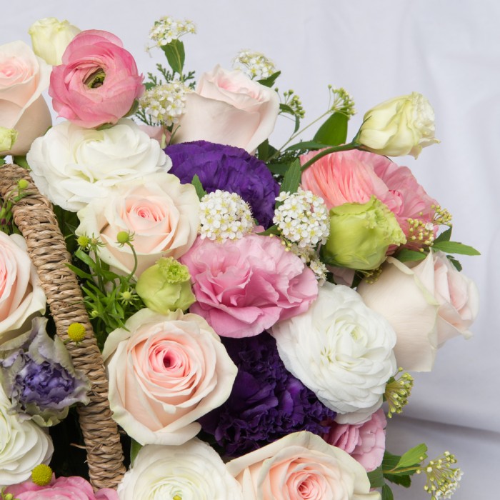 핑크색과 보라색의 장미, 라넌큘러스을 주소재로 사용하여 고급스러운 느낌을 표현한 상품입니다.