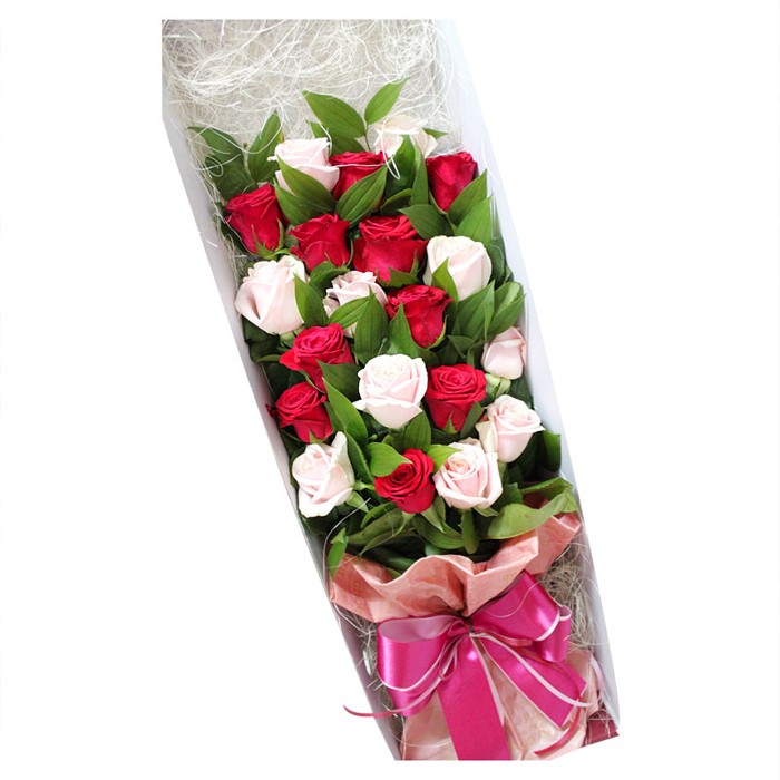 붉은 장미와 핑크 장미를 예쁘게 상자에 장식한 상품입니다.