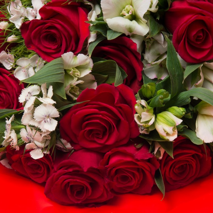 붉은 장미로 표현한 정열적 느낌의 꽃다발입니다.