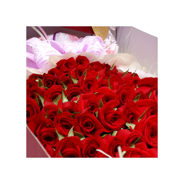 붉은 장미 100송이를 사각상자에 장식한 상품으로 연인들의 선물용으로 추천드립니다.