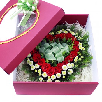 붉은장미만을 구성하여 담은 꽃박스입니다.