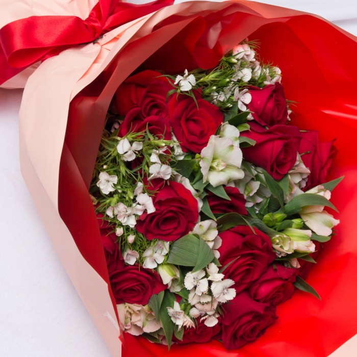 붉은 장미로 표현한 정열적 느낌의 꽃다발입니다.